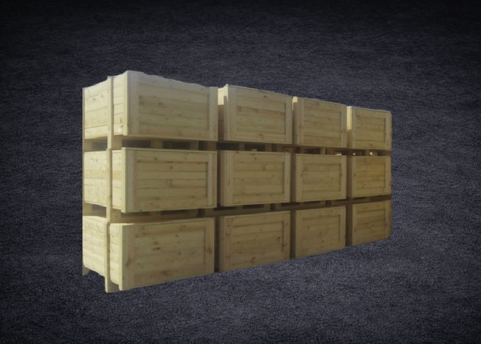 Cajas de madera cerradas para cargas que requieren estabilidad y resistencia estructural.
